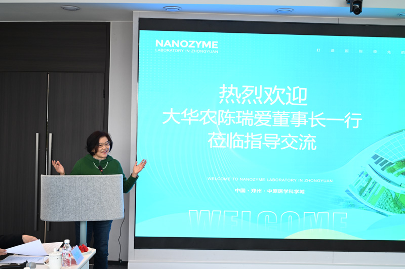 中国科学院院士阎锡蕴在开幕致辞中,对陈董事长及其团队成员的到访表示热烈欢迎,并强调了此次实验室与大华农战略合作的重要意义。她指出,此次合作将为双方带来全新的发展机遇,推动纳米酶技术在动保与畜牧养殖业领域的应用与创新。阎院士表示,大华农科研团队从科学研究到成果产业化的成功转型经验值得深入学习,同时希望借鉴西江实验室的成功模式,为实验室的发展提供方向性指导。她强调,将多年科研成果转化为社会价值是实验室的重要使命,期待通过此次合作实现这一目标。最后,阎院士对未来实验室与大华农团队的深度合作充满信心,相信双方携手必将开创更加辉煌的未来。