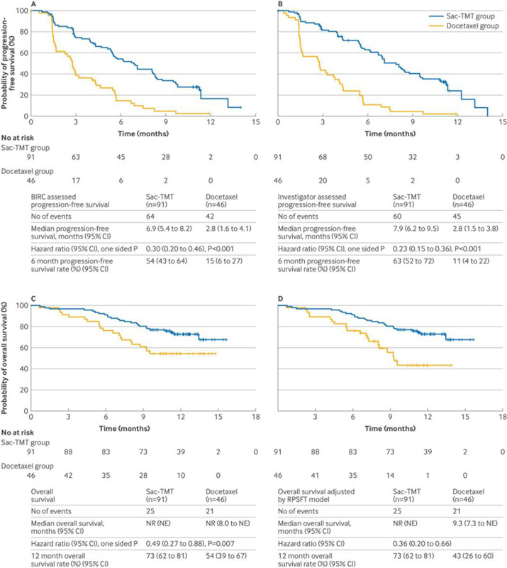 本研究为注册性Ⅲ期临床试验OptiTROP-Lung03的第二部分数据。研究纳入137例经EGFR-TKI和含铂化疗双重治疗失败的晚期非小细胞肺癌患者,按2:1比例随机分配至芦康沙妥珠单抗组或多西他赛组。